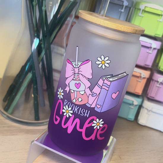 Bookish Girlie 16oz Glass Purple Tumbler